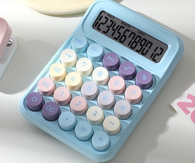 ماشين حساب هاي رنگى رنگى گوگولى باكيفيت عالی سایز بزرگ باطری خور داراي شش رنگ{ابيصورتیسبزقهوه ایبنفشسفيد} ‼حروف به صورت کلاسیک و نوشته ها برچسبی نمیباشد‼
