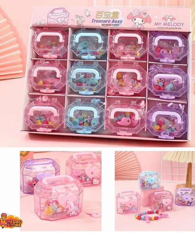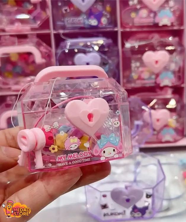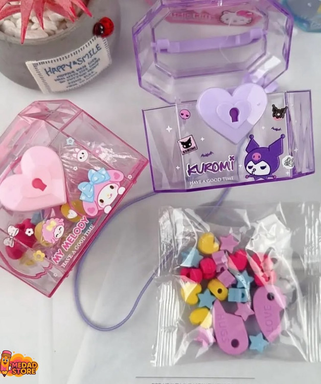 پاکن صندوقچه ای سانریو یه صندوقچه پر مهره مهره که خیلی جذابن تازه این مهره ها همشون پاکنن دوتا کلید داره که با کلید باز و بسته میشه یه جعبه باحال و خوشکل که حتی پاکناشم تموم شد میشه داخلش اکسسوری و ….. بریزی و درشو قفل کنی این صندوقچه چهار طرح پاره که یکی از یکی خوشکل تر این صندوقچه رو دوست داشتی؟
