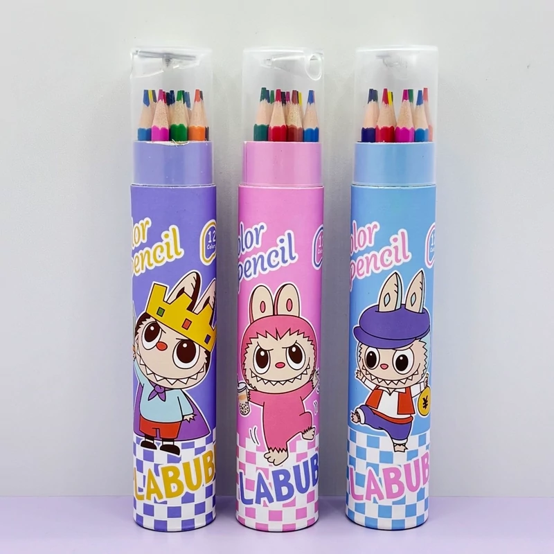 مدادرنگ12تایی لبوبو جعبه استوانه کیفیت خوب بدون شکستگی همراه با تراش رنگدهی خوب